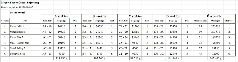 Köszönjük a Versenyzőknek a helytállást, a Gyulai Sporthorgász Egyesületnek és Schlett Árpád Elnök Úrnak versenypálya rendelkezésünkre bocsátását és munkatársainknak a lebonyolítást.
