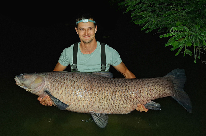 Fogási körülmények: 2019-ben vettem a fejembe, hogy egyszer fognom kell tudatosan és szabályosan egy feketét a Kákafokból. Azóta minden évben próbálkoztam a fogásával, de néhány eredménytelen horgászat után minden évben feladtam a sikertelenségeknek és a halat fedő misztikumnak köszönhetően. Idén májusban azonban azt mondtam, addig nem adom fel, amíg szákba nem terelek egyet. Kis szünetekkel ugyan, de 4 hónapon át, heti 5-6 nap horgászat, sok kísérletezés, variálás és több hely kipróbálása után a befektetett energia és türelem végül megtérült, és augusztus végéig több fekete amurt is tudtam fogni, melyek közül kiemelkedett két óriás, egy 45 kg-os és egy 46,6 kg-os példány. A halak kímélése érdekében a fotózást és mérlegelést minden esetben vízből végeztük.